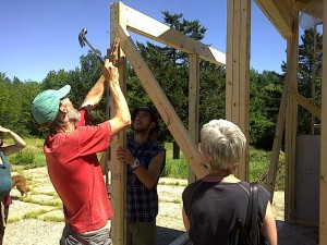 While the Mahone Bay Area Farmers’ Market was celebrating Provincial Farmers’ Market Week with special demonstrations, spoken word performances and farm animals, the Tiny Studio crew worked on. By the end of the day they were framing the front extension.