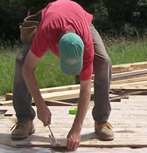 Tiny Studio – Laying the subfloor The Blockhouse School Project Posted on August 1, 2013 by Heather HolmAugust 18, 2013 Lloyd and David laying the tongue-and-groove subfloor on August 1 A swing by the school on Thursday afternoon found Lloyd and David putting down the subfloor. Laying it diagonally adds strength to the structure.