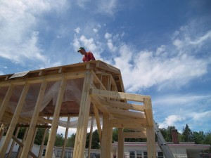The roof over the front extension got framed yesterday.