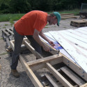 While the Mahone Bay Area Farmers’ Market was celebrating Provincial Farmers’ Market Week with special demonstrations, spoken word performances and farm animals, the Tiny Studio crew worked on. By the end of the day they were framing the front extension.